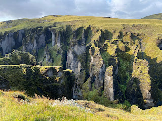 Today was a great day. We left Vik and headed east, stopping at Fjadrargljufur canyon. I really recommend this stop as it is a very short easy walk from the parking area along the top of the canyon and the view looking back out the canyon is really gorgeous.